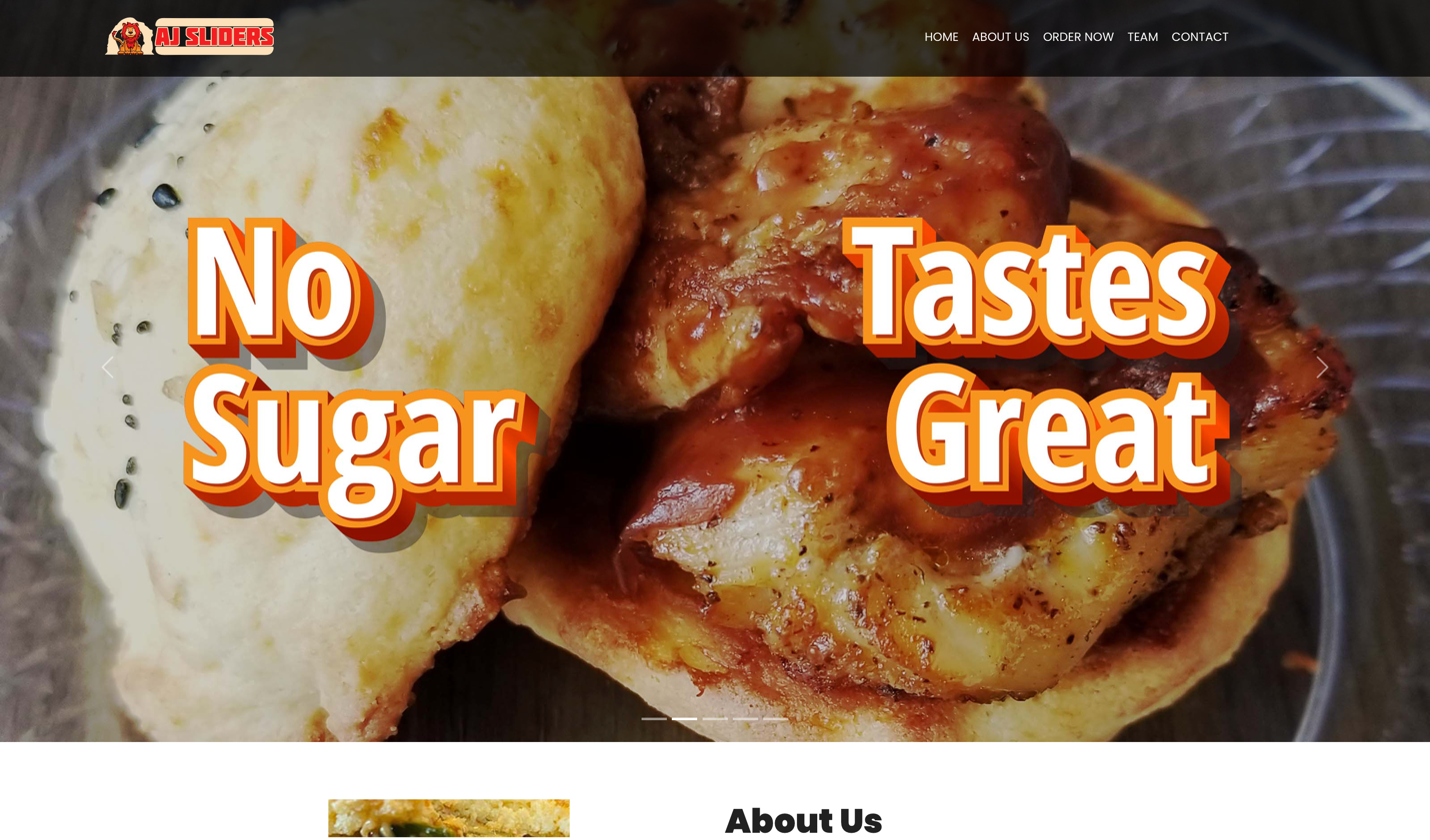 - Top Menu Bar: It contains main navigation options like Home, About Us, Order Now, Team, Contact.