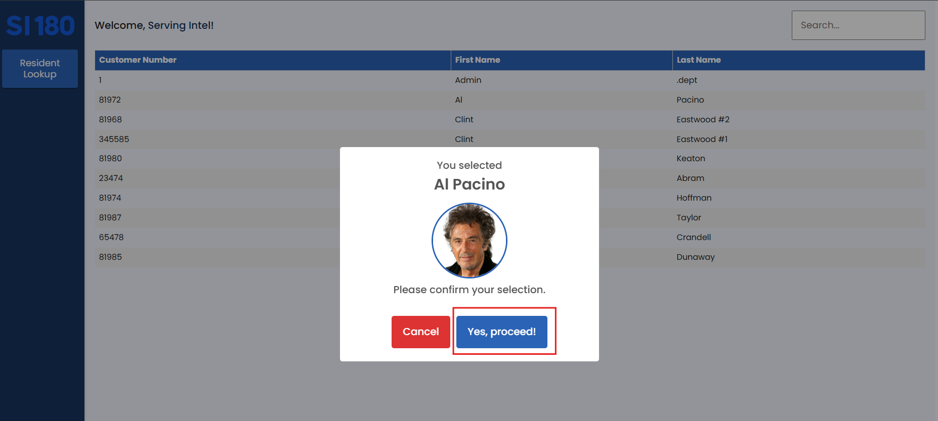 2. If the correct resident is found, click “Yes, proceed!”