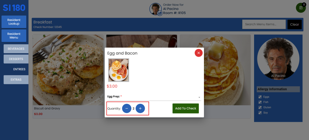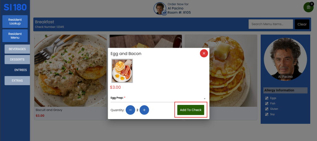 7. Click “Add to Check” to add the items to the order.