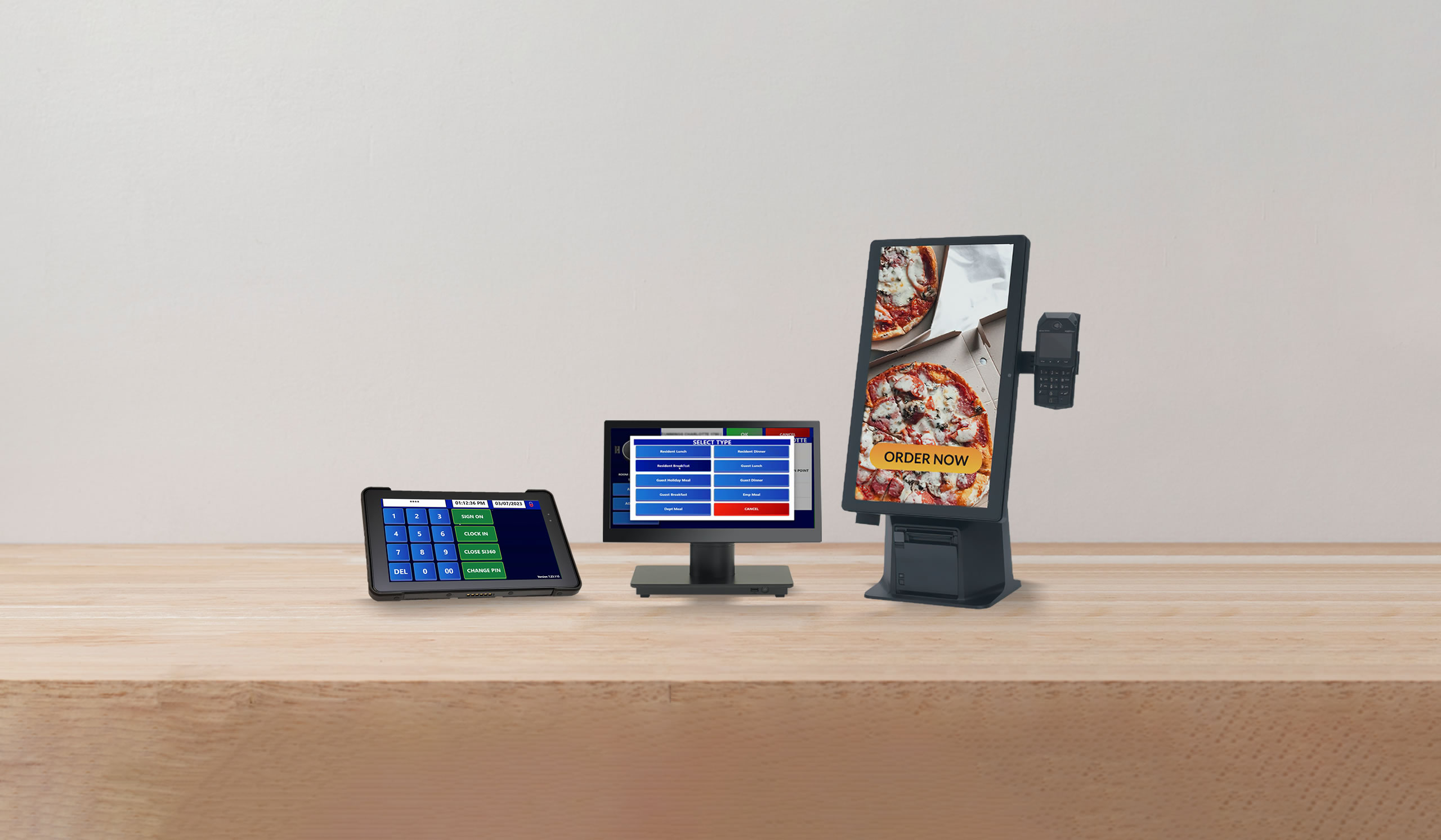 - A “Scan Now” button on the kiosk allows barcode scanning to add items to guest checks.