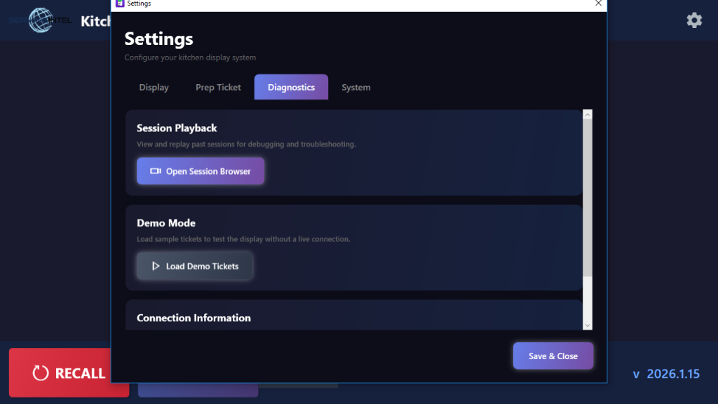 This guide explains the main features of SI-KDS, including ticket viewing, Recall and Recipes functions,