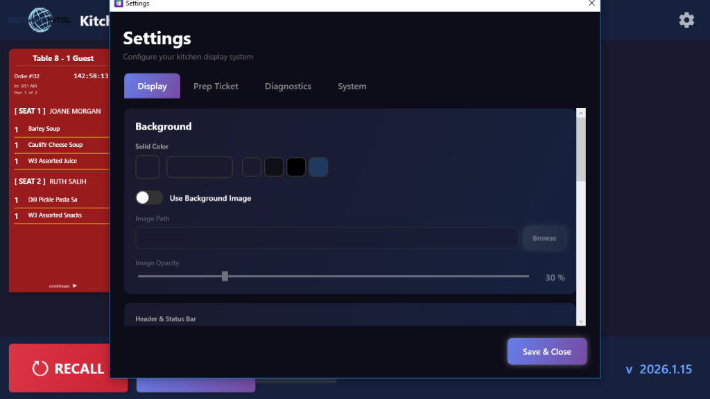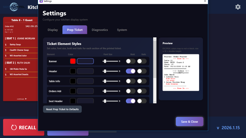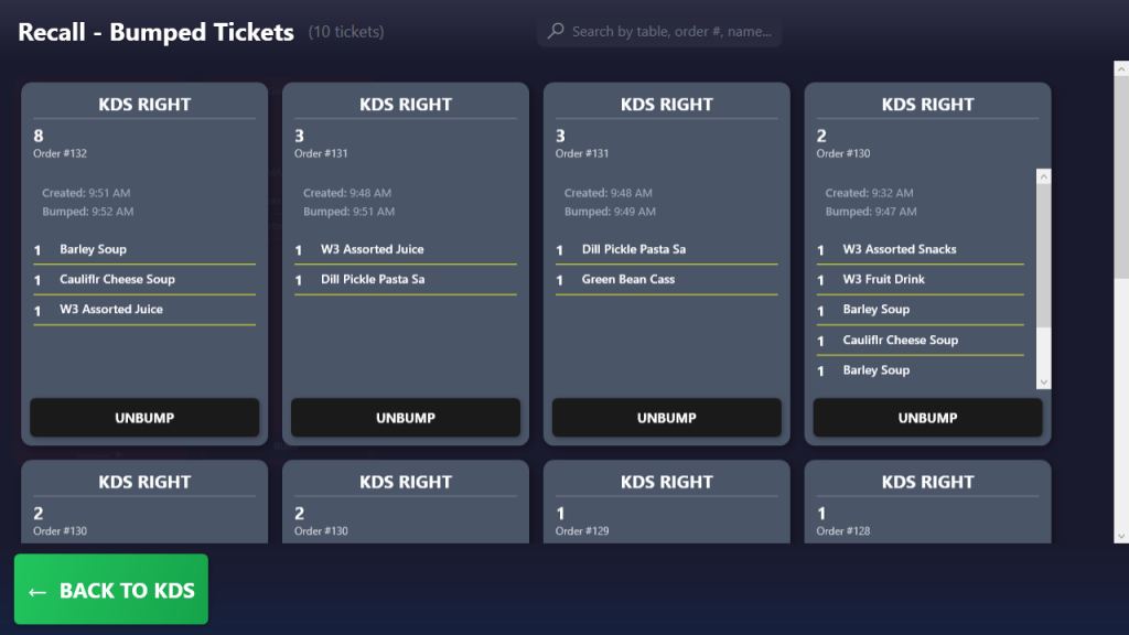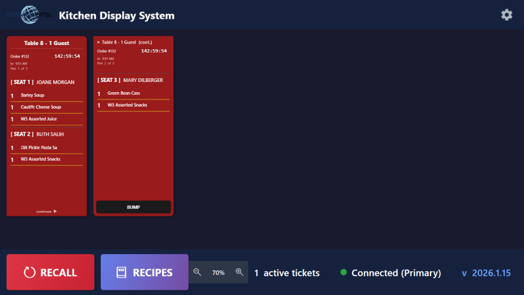 SI-KDS is the kitchen display system used to receive and manage prep tickets sent from the POS. It