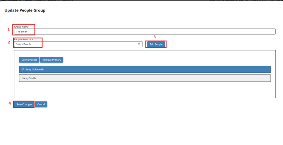 3. Enter a “Group Name,” then search for and select the names you wish to add from the “People Associate” list. Click “Add People” and then “Save Changes.”