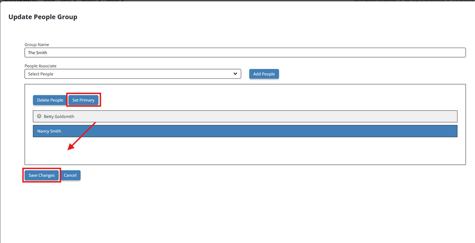 4. From the list of names you’ve added, choose who you want to set as “Primary.” Then click “Save Changes.”
