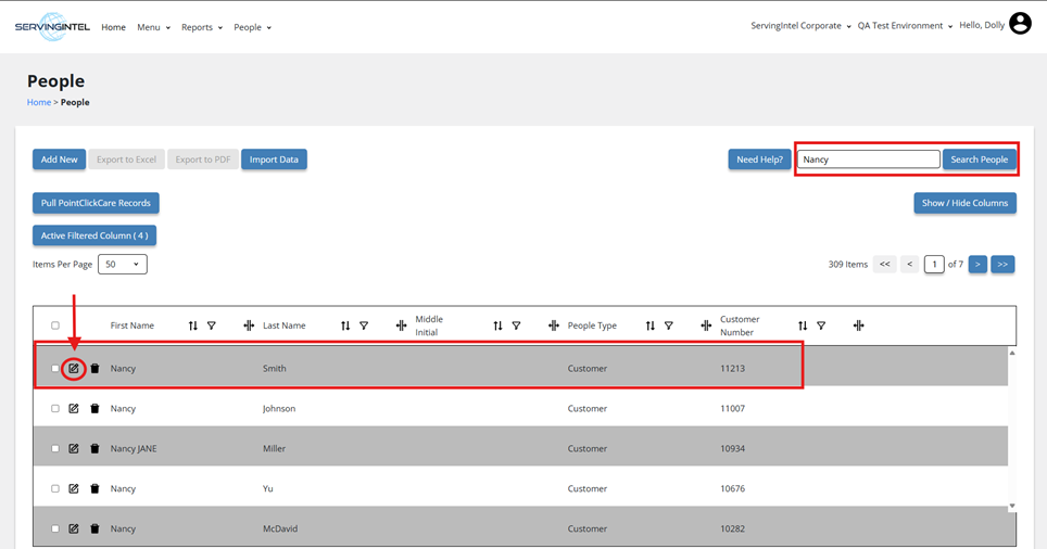 9. Repeat the same process for the other member. Enter the name in the search bar and click “Search People”. When you see the right name, click the “edit” button.